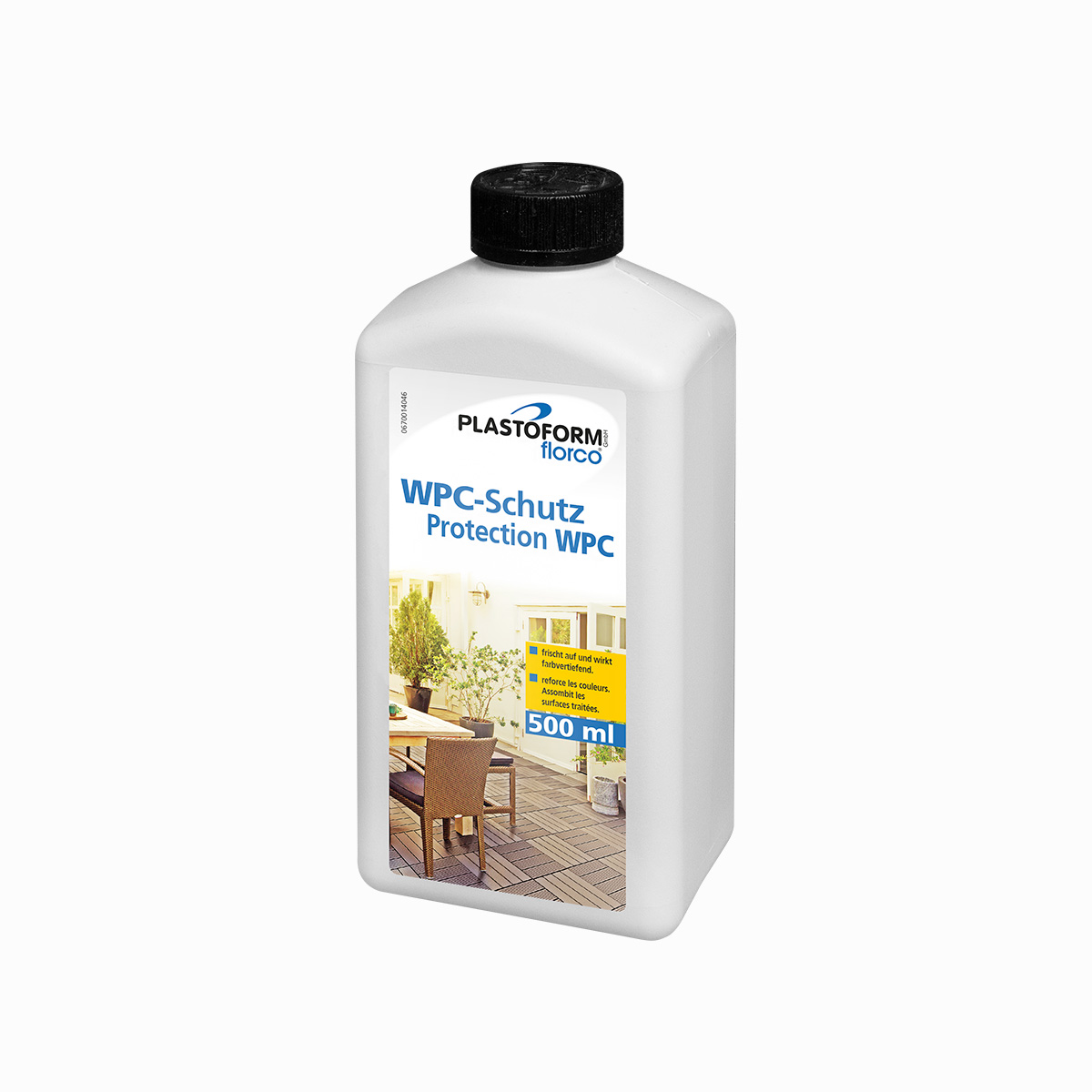 Zur Grund- und Unterhaltsreinigung. Beseitigt Schmutz, Flecken, leichte Grünbeläge und andere Verunreinigungen von WPC Oberflächen. Anwendung: Losen Schmutz mit einem Besen von der Oberfläche beseitigen. Ca. 50 ml mit 8-10 Liter Wasser vermischen. Gleichmäßig auftragen – kurze Zeit einwirken lassen und wie gewohnt wischen. Nachspülen mit Wasser ist hier nicht unbedingt erforderlich. Bei stark verschmutzten Fliesen: Ca. 250 ml mit 8-10 Liter Wasser vermischen. Gleichmäßig auftragen – kurze Zeit einwirken lassen und wie gewohnt wischen. Bei sehr starker Verschmutzung, Behandlung wiederholen und länger einwirken lassen. Mit Wasser gründlich abspülen (bis max. 80 bar).